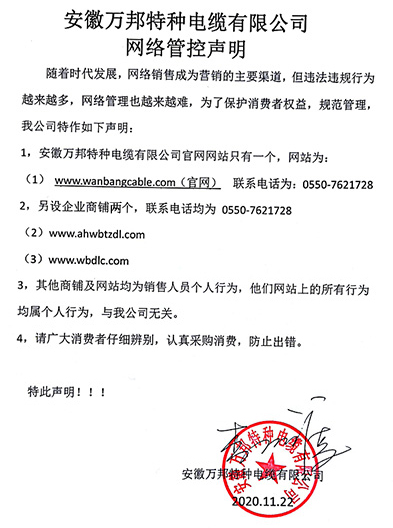 鄭重聲明:安徽萬邦特種電纜有限公司官方網站為:www_wanbangcable_com.weixingit.cn,除此之外無任何子網站或合作網站,其余均為假冒偽劣。電話:0550-7621728 13485756353 地 址:安徽省天長市滁州高新技術產業開發區經四路29號